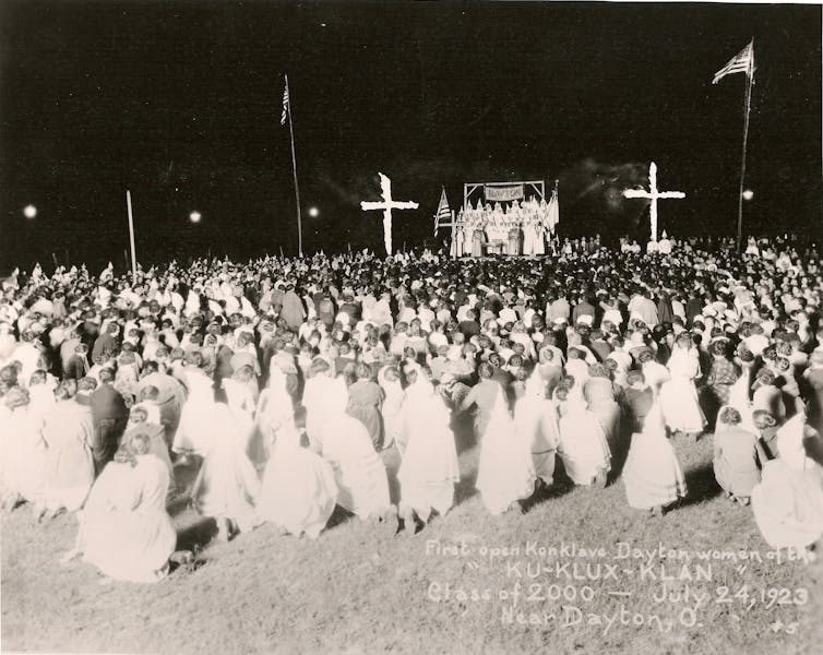 ККК је најозлоглашенији по насилном терорисању Афроамериканаца. Али током 1920-их његова мржња је имала и друге мете, посебно ван југа. Ова верзија ККК, позната као Други Кју Клукс Клан, узнемиравала је католике, Јевреје и имигранте – укључујући студенте и особље на католичким универзитетима попут Дејтона, где сам ја историчар америчке религије. Све ово је у фокусу мог чланка из 2013. године „Чути тишину“.