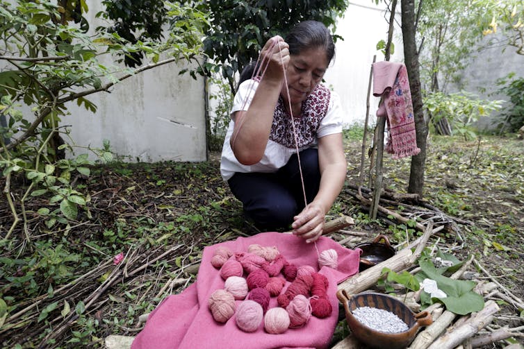 Узгајање и жетву вршили су староседелачки мезоамерички народи који су живели под шпанском влашћу, који су то већ чинили вековима. Били су плаћени у пенијима, док је њихов рад омогућио Шпанији да задржи свој монопол на вредну црвену боју.